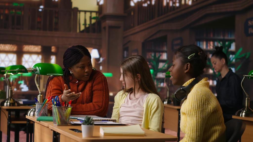 Narrative games nurture vocabulary, perspective-taking, and coherent sequencing. Players craft motives, describe settings, and negotiate outcomes, strengthening oral fluency and writing. Invite shy speakers to contribute through character notes or artifacts. Want classroom-ready narrative prompts? Subscribe and receive quarterly bundles aligned to language standards.